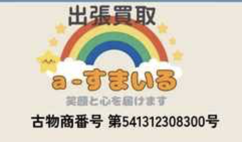 出張買取の「a-すまいる」です!年中無休で毎日9時〜19時まで元気に活動中。早朝や夜のご相談もOK!ご自宅まで伺って、丁寧に査定いたします。「これ売れるかな?」そんな時はお気軽に♪あなたの笑顔と安心を大切にしています。