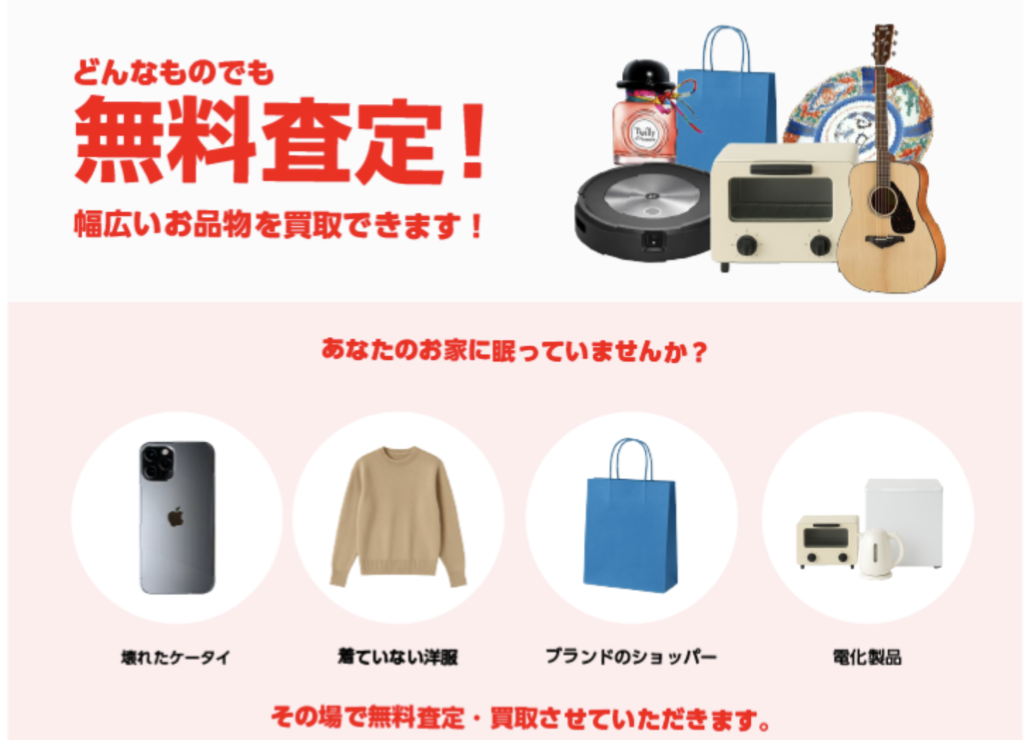 出張買取買いクルです。 当店は皆様のご自宅へ出張査定しております。 ・出張買取を呼びたい ・フリマサイトで売れなかった商品がある ・不用品が多い、リサイクルショップには全て持ち込めない不用品がある ・不用品を処分しようとしたが高額な料金になった。 そんな方は是非買いクルに一度ご相談ください。