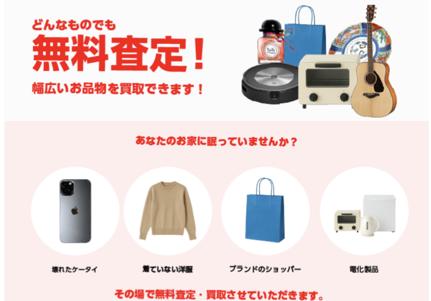 出張買取買いクルです。 当店は皆様のご自宅へ出張査定しております。 ・出張買取を呼びたい ・フリマサイトで売れなかった商品がある ・不用品が多い、リサイクルショップには全て持ち込めない不用品がある ・不用品を処分しようとしたが高額な料金になった。 そんな方は是非買いクルに一度ご相談ください。