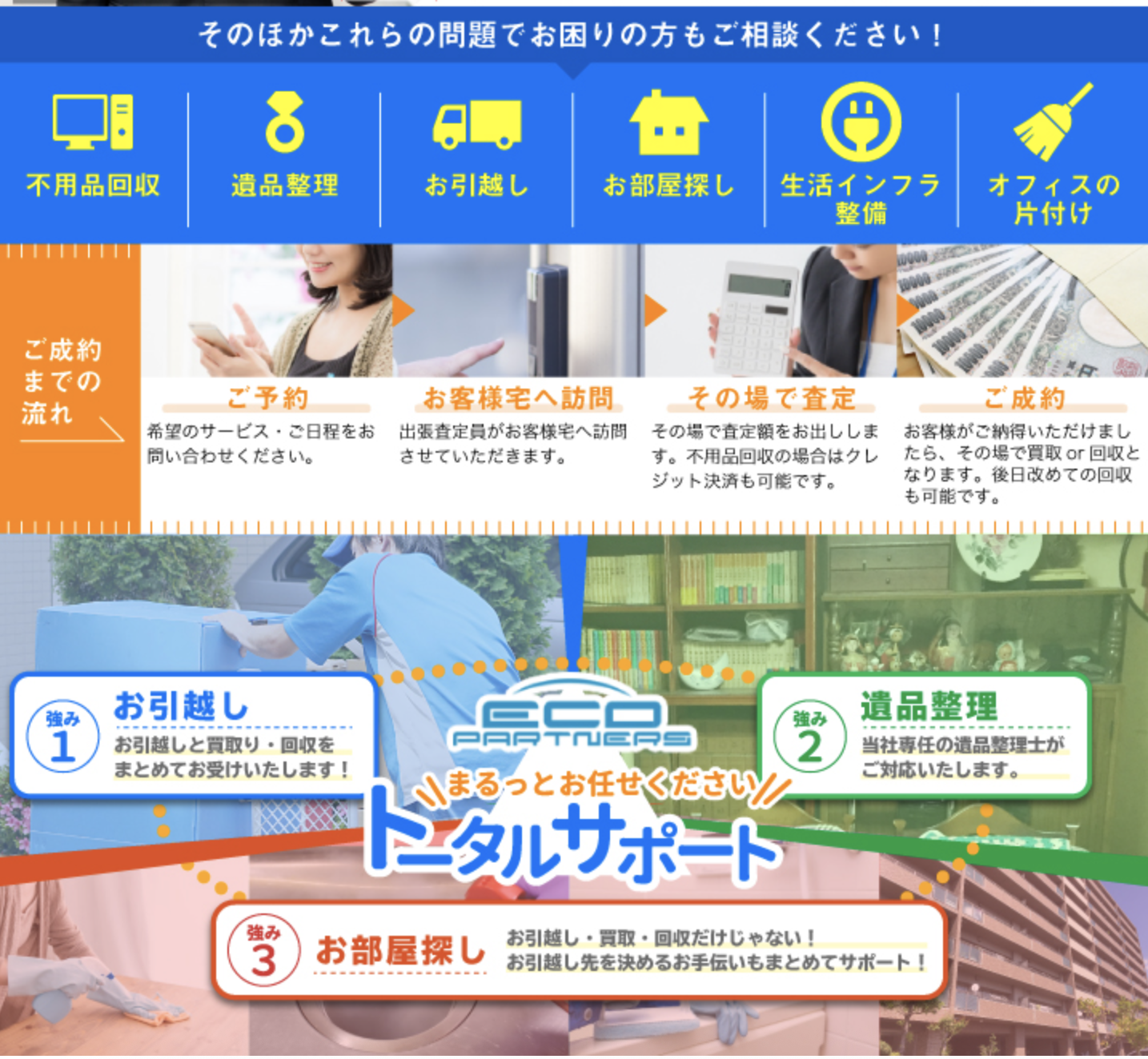 大手比較サイトでの【口コミ年間No.1】の実績!【業界最高水準の高価買取】と【お客様の個人情報が万全に保護された不用品回収】の2つのサービスに自信を持っております!