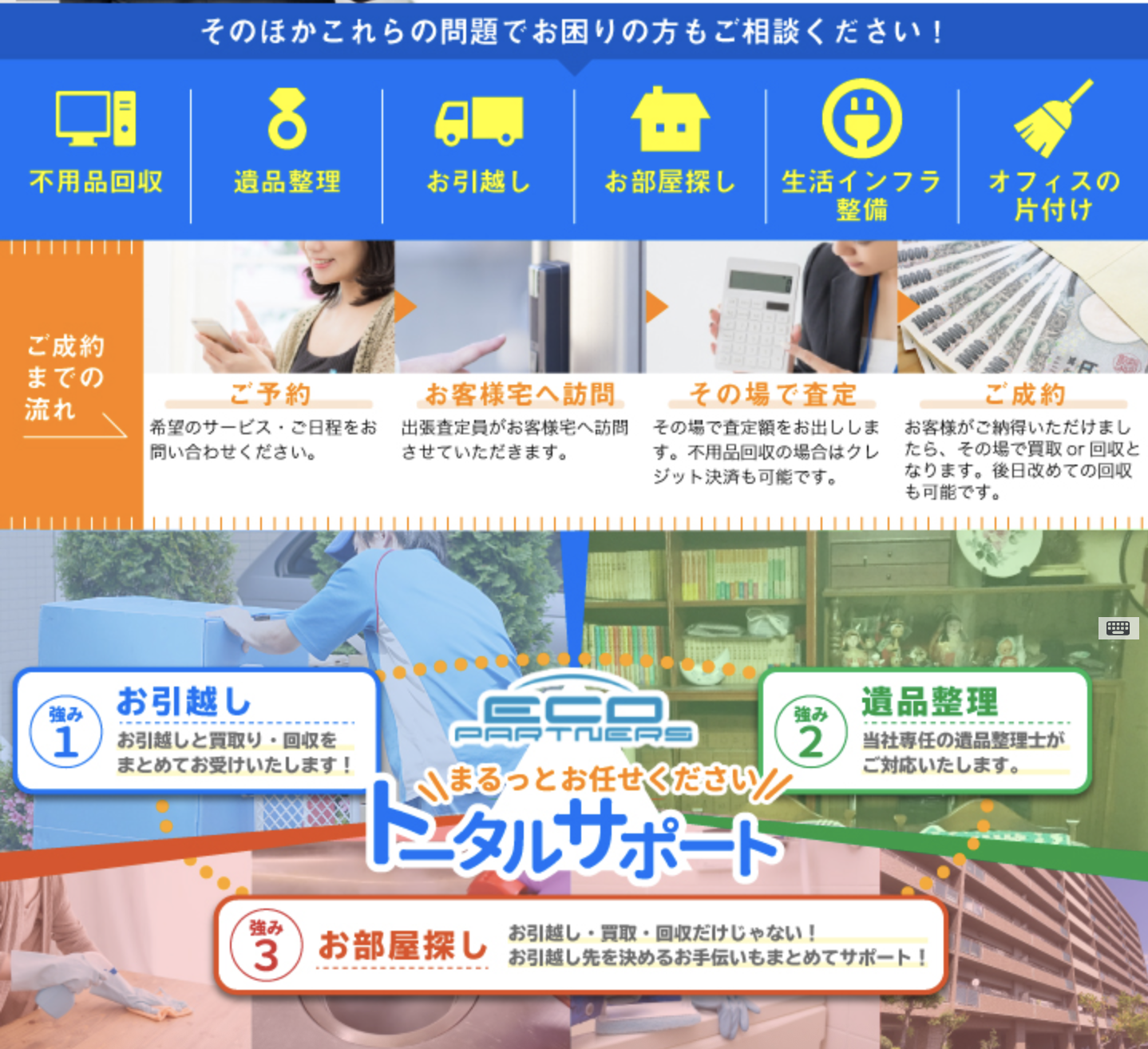 大手比較サイトでの【口コミ年間No.1】の実績!【業界最高水準の高価買取】と【お客様の個人情報が万全に保護された不用品回収】の2つのサービスに自信を持っております!