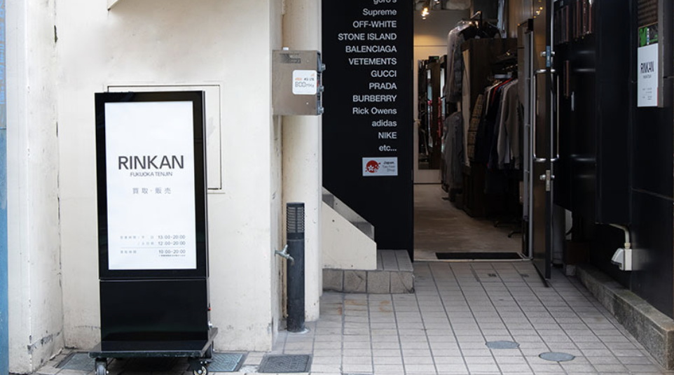 福岡、天神エリアでブランド品の高価買取ならRINKAN福岡天神店にお任せください。地下鉄空港線天神駅より徒歩8分、赤坂駅5番出口からは徒歩6分。ソラリアプラザ、シュプリーム、BAPEなどがひしめく天神・大名エリアにございます。クロムハーツ、ゴローズをはじめ、旬のデザイナーズ、ストリートブランドアパレルのほか、エルメスなどブランドバッグ、カルティエなどブランドジュエリーほか、幅広いブランドアイテムを高価買取いたします。またショッピングについても、クロムハーツ、ゴローズのほか、セリーヌ、ディオール、バレンシアガ、ナイキ、アベイシングエイプなど旬のアイテムを取り揃えて皆様のご来店をお待ちしております。