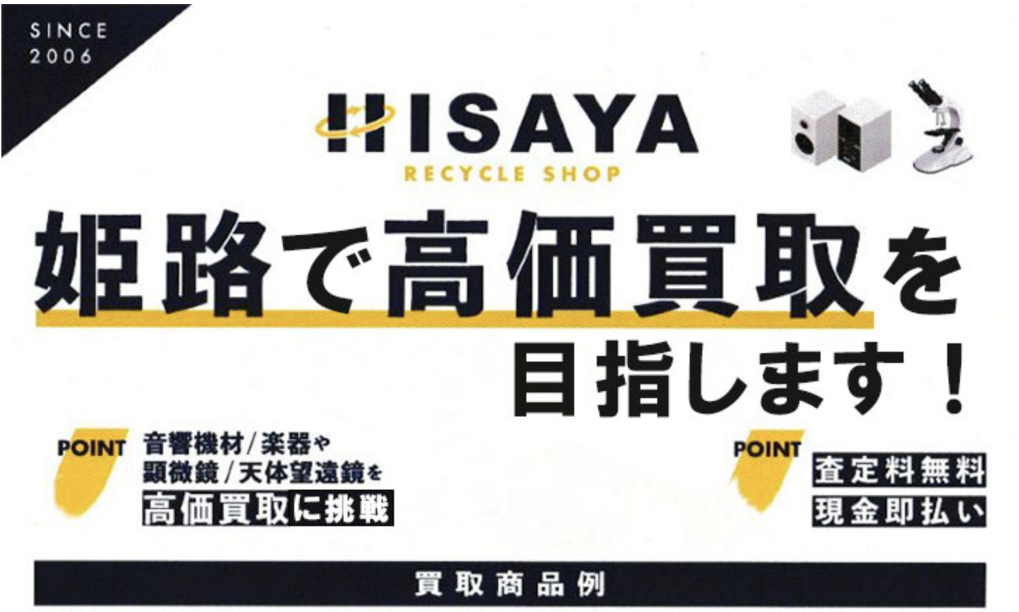 兵庫県姫路市を中心に、家電/オーディオ/楽器/おもちゃから専門機器まで幅広い買取をしています。