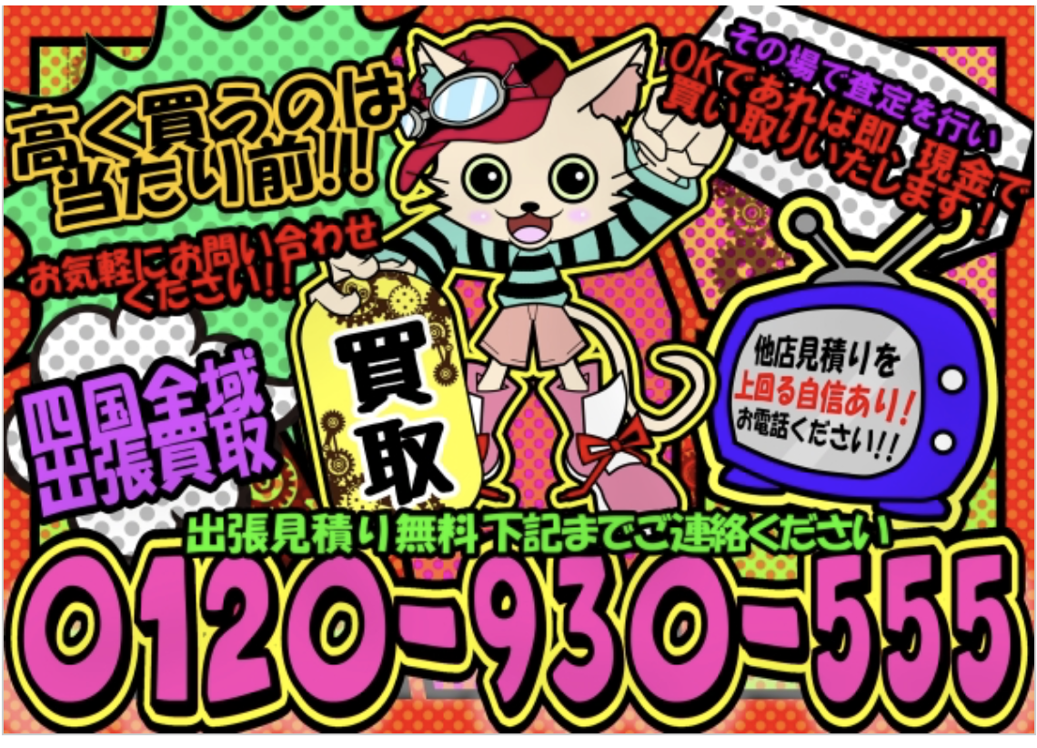 四国エリア・岡山県を中心にスピード出張実施中! 最短当日~のお伺いやご相談だけのお電話もOK♪ ご連絡先【 0120-930-555 】 ★口コミ評価で買取額UPキャンペーンも実施中★