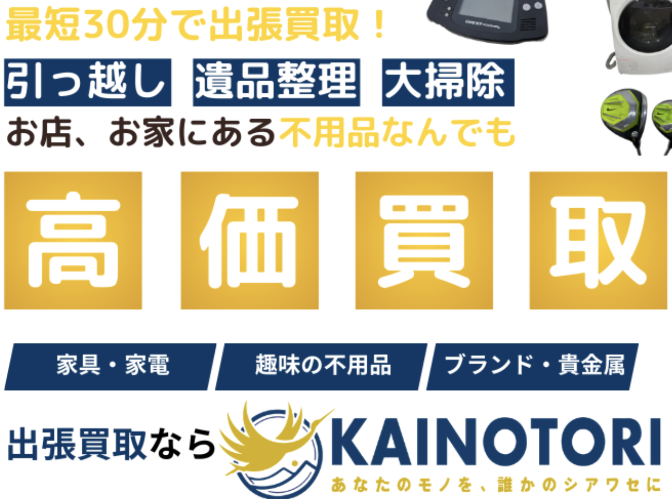 | 出張買取 | カイノトリでは東京の本部や関東の支店を中心に出張対応エリアを拡大中です!最短当日30分から日時指定など、柔軟に対応してお客様の不用品を買取させていただきます!記載のないアイテムでも買取いたしますのでまずはお気軽にご相談ください! |