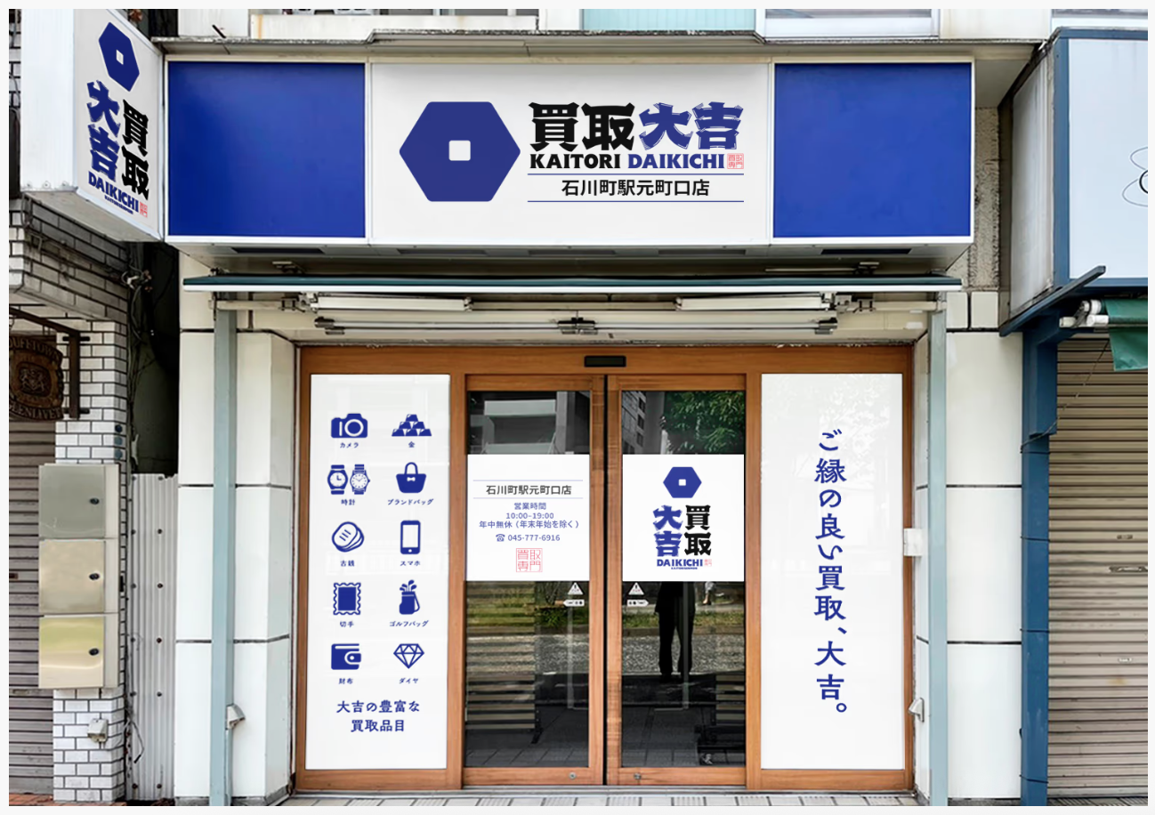 JR石川町駅 元町口より徒歩10秒!! 信頼と実績の買取大吉が石川町の元町口徒歩10秒のところにございます! 是非!お越しくださいませ