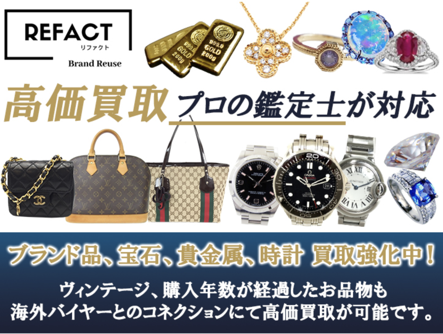 ブランド品・宝飾品・時計など大切なお品物、高級品のご相談はリファクトへ 毎月1億円以上、年間15億円以上の査定・鑑定・買取の経験がございます。 最新のお品物はもちろんのこと、珍しいお品物、アンティーク、ヴィンテージ価値も含め付加価値を最大限お付けさせていただきます。 鑑定歴15年以上の経験・実績が豊富な熟練鑑定士がお客様にベストなお買取りのご提案!