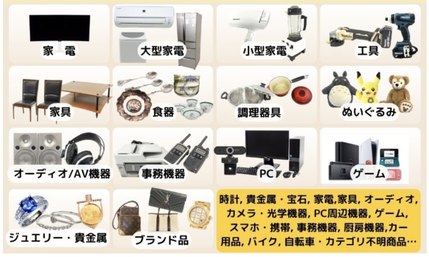 買取品目の多さに自信があります。 遺品整理、引っ越し等「ごみ」として捨ててしまう前に 是非お使いください。 国内リユース可能な物は高価買取・中古の食器や調理器具等こんなものまで!と驚き多数です!