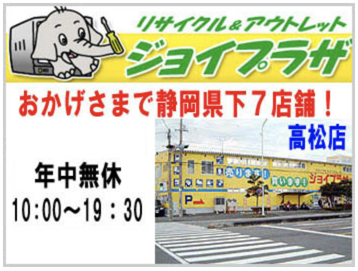 おかげさまで静岡県下8店舗。リサイクル&アウトレットショップジョイプラザです。