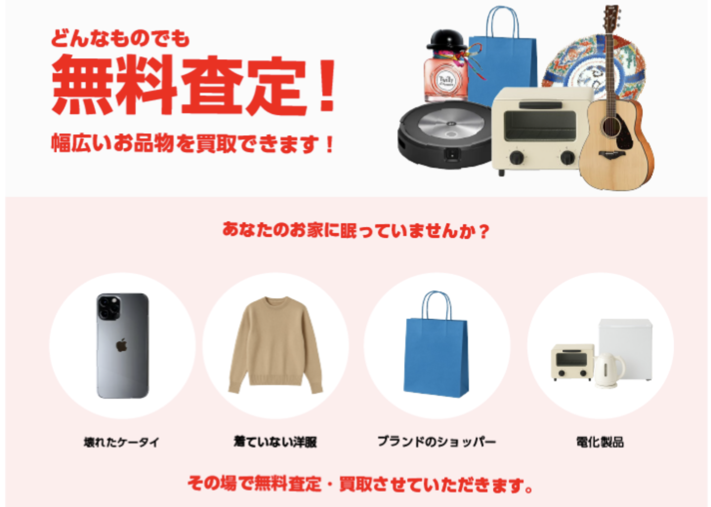 出張買取買いクルです。 当店は皆様のご自宅へ出張査定しております。 ・出張買取を呼びたい ・フリマサイトで売れなかった商品がある ・不用品が多い、リサイクルショップには全て持ち込めない不用品がある ・不用品を処分しようとしたが高額な料金になった。 そんな方は是非買いクルに一度ご相談ください。