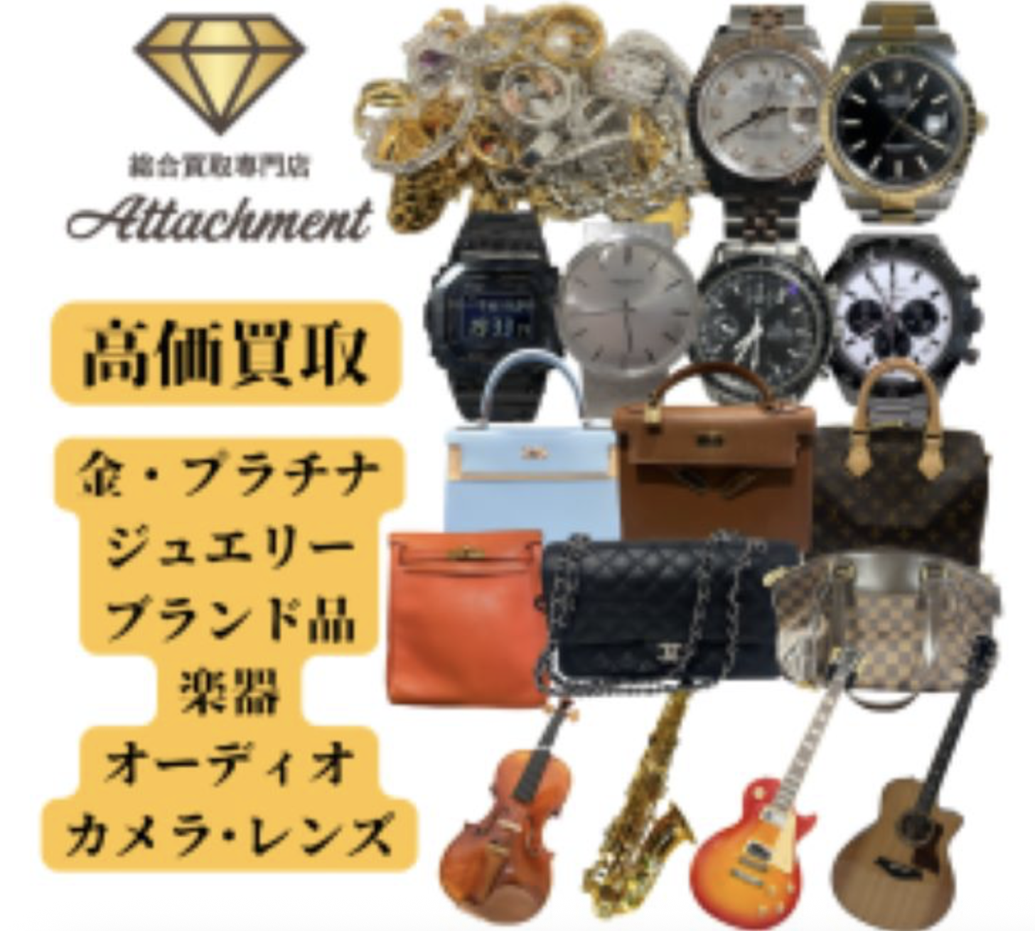 ブランド、貴金属から小型家電、カメラ、楽器など種類豊富です。自動車・重機なども査定可能です。ご相談内容幅広く承ります。(HPに詳細がございます。)