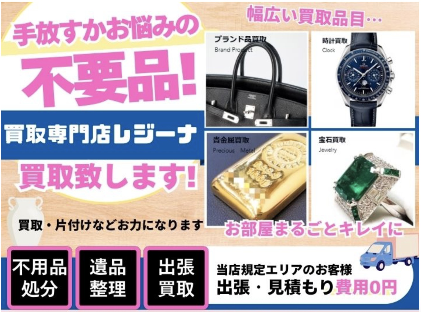 貴金属、ブランド品はもちろんのこと、家具家電、その他雑多なお品もにも自信があります!