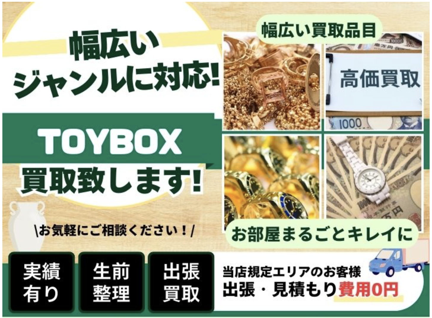 | 出張買取 | 一人では持ち運びが難しい大きいものもご相談ください!1点から部屋のまとめて買取・片づけまで対応します。お引越しの後の片付けも対応かのうです! |